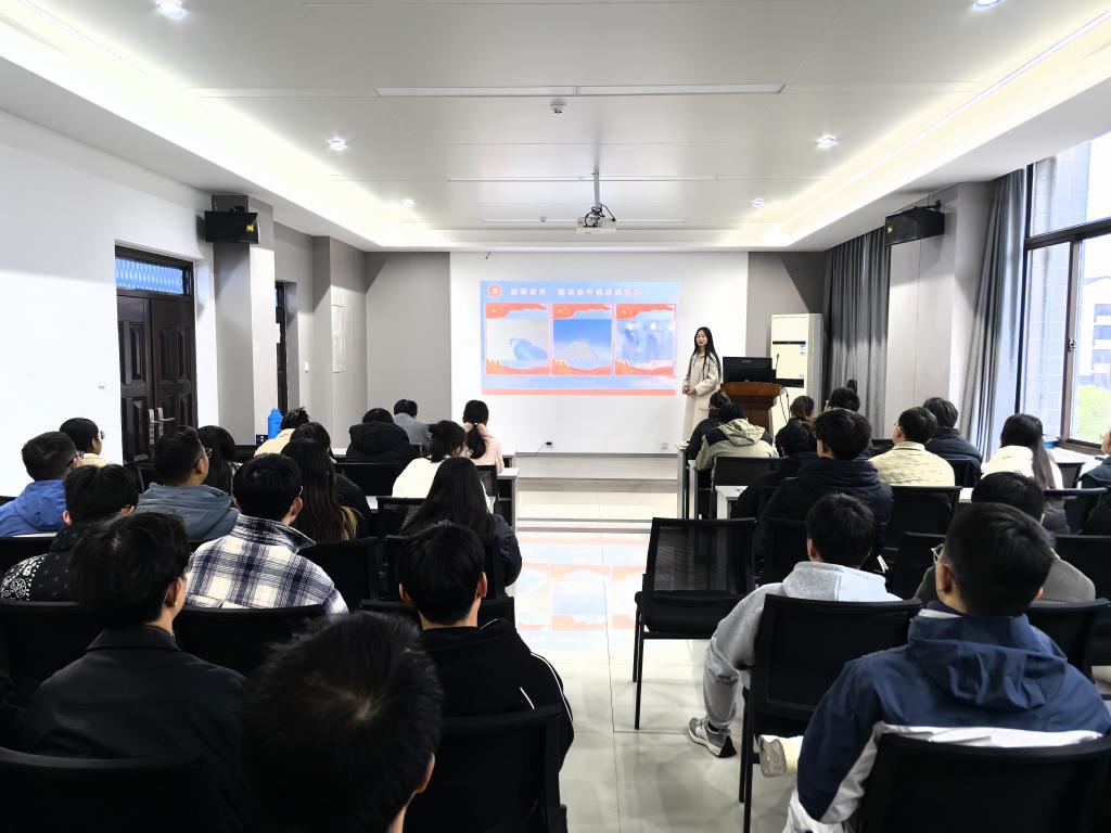 宣讲团三位成员结合专业特长,分别从“追光科学家精神”“执手为绿作答卷,美丽中国入画来”“传承红色精神,争做青年先锋”等方面,通过视频、图片、文字等形式,展现新时代科学家精神的丰富内涵;以马鞍山薛家洼生态治理为例,引出深入践行习近平生态文明思想,在绿色低碳高质量发展中牢记嘱托、勇当标杆;从延安精神、井冈山精神等党和国家宝贵精神财富中汲取新时代青年奋进的智慧和力量。