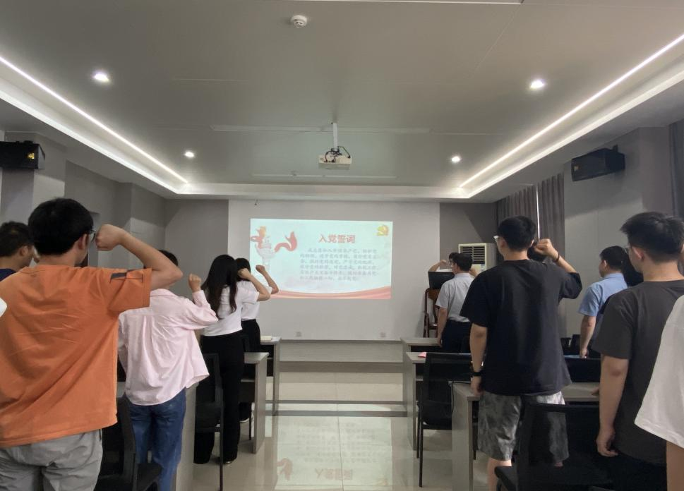 于秀山校区冶金楼南302会议室举行2024年上半年新发展党员入党宣誓仪式,学院党委委员、各党支部书记以及全体新发展党员参加宣誓仪式。仪式由辅导员王倩老师主持。