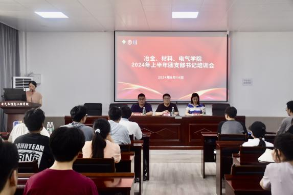 为深入学习贯彻习近平总书记关于青年工作的重要思想,提高团支部书记的理论素养和业务能力,切实加强基层团组织建设,6月14日中午,冶金、材料、电气三个学院于电气楼113报告厅联合举办了2024年上半年团支部书记培训会。冶金学院团委书记张夏、材料学院团委书记邰子剑、电气学院团委书记甘如美江、电气学院团委副书记汤敏以及各学院团支部书记参加会议。