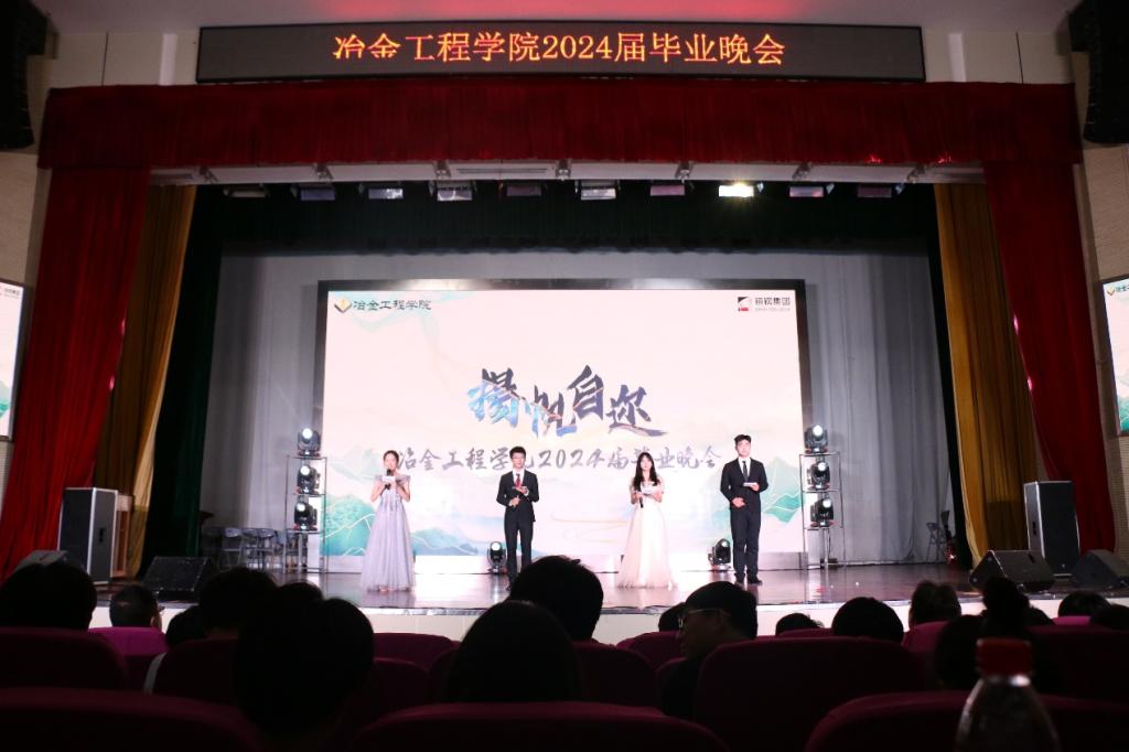 本次毕业晚会共分为三个篇章:第一篇章《忆往昔,风华正茂》,第二篇章《梦百年,星辰千里》,第三篇章《哥荣光,年少无惧》。晚会在活力四射的舞蹈串烧中拉开帷幕,节目《凤凰花开的路口》等歌曲情感真挚动人,充满了对未来的期待和向往;话剧《谁杀死了周日》展现了冶金学子拒绝拖延的决心;毕业班12个班级班长及辅导员助理共同演绎的创意舞蹈《被子青蛙》,展现了学生们独特的青春活力和超强默契;学院5个本科生党支部12名毕业班党员的配乐诗朗诵《彼方尚有荣光》慷慨激昂、气势磅礴,诵出了新一代工大青年的心声;辅导员特别版歌曲《爱你》表达了对2024届毕业生的深厚情谊。