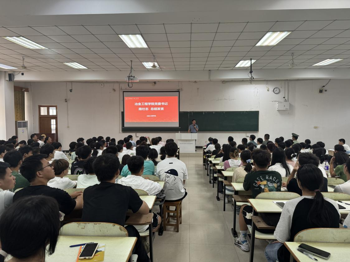会议伊始,院长龙红明作题为《低碳与智能冶金,助力中国式现代化发展》的主题报告,详细介绍了学院发展历程、师资队伍、人才培养等方面内容,帮助新生了解冶金等相关行业的发展趋势与未来方向,促使新生对所学专业有了更加深刻的认识。