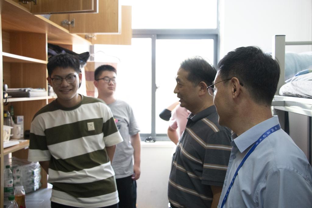 每到一个宿舍,学院领导均与学生亲切交流,询问学生入学感受及存在的困难,解答学生关于住宿、军训等方面的疑问,要求大家遵守学校宿舍管理规定,防火防盗防范电信诈骗,营造温馨的宿舍文化氛围。同时,勉励学生要珍惜大学生时代,珍惜同窗之情,在生活和学习中互帮互助,共同进步、共同成长。