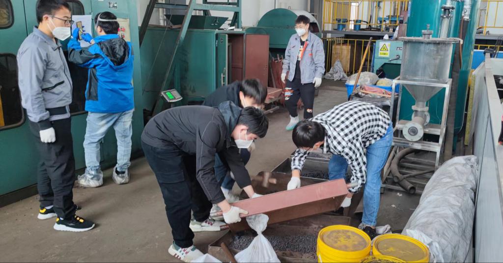 针对宝钢面临的钢铁污泥难处理的关键技术难题,实践队持续跟踪调研,凭借扎实的专业功底与不懈的探索精神,通过详尽的样品分析、严谨的数据处理以及实验室技术的创新开发,精准把脉宝钢生产流程中的关键环节与技术瓶颈,提出了基于污泥配矿烧结的关键技术,重点关注了烟气污染物等环保指标和烧结产品质量指标的解决方案,给出了包括改进建议、创新思路和可行性方案。为验证这些方案的实效性,实践队员与宝钢工程师配合在现场开展了为期一周的工业实验,跟踪烧结过程生产和环保数据的变化,并为现场堆存的污泥处置提供理论指导和技术支撑。经过双方的共同努力,宝钢成功实现了难处理的冶金固废得到资源化利用,显著减少了污泥堆存量,为钢铁产业的绿色低碳发展注入了强劲动力,彰显了企业在科技自立自强道路上的坚实步伐。实践成果在宝钢能环部会议中心进行了汇报,实践队对宝钢面临的钢铁污泥难处理的关键技术难题进行了深度剖析,从难点解析、提出方案、结果验证、工业应用等多个维度来论证,实现高校和企业在科技成果转化中的“双向奔赴”。宝钢领导认真听取实践队的汇报,并与队员们展开亲切的交流,肯定了实践队的实践成果,刘建平首席说:“非常感谢安工大博士科技服务团,你们的实践成果为我们公司固废资源化处置提供了新途径及新方案,成效显著,对加快绿色低碳转型,促进企业高质量发展具有积极的意义和作用,也非常欢迎优秀的你们毕业来到宝钢工作,为我们国家钢铁事业添砖加瓦。”
