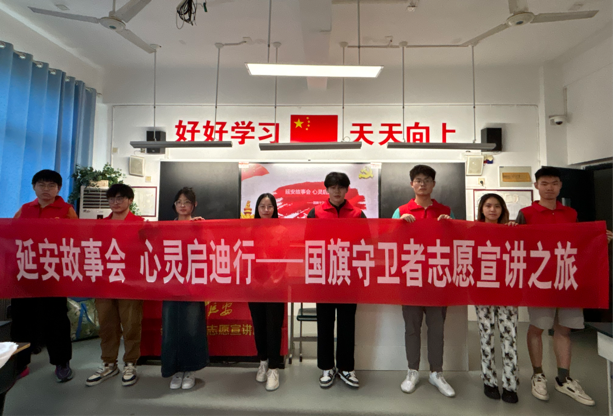 国旗守护者志愿宣讲团队自成功入选2024年全国大学生延安精神志愿宣讲团队以来,团队累计志愿服务时长超510小时,他们精心筹备,全身心投入到每一次服务活动之中,累计开展延安精神专题宣讲11场,志愿服务活动13次,受益群众达两千余人次,在校园和社会中引发了一场学习延安精神的热潮。