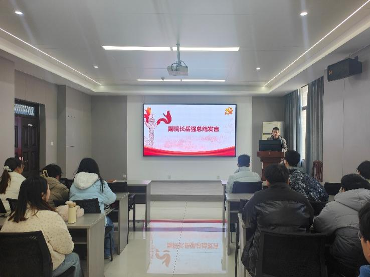 于冶金楼南302会议室举行2024年下半年新发展党员入党宣誓暨转正党员重温入党誓词仪式。学院党委委员、副院长岳强、各党支部书记、全体新发展党员以及转正党员参加宣誓仪式。仪式由支部书记李亚飞主持。