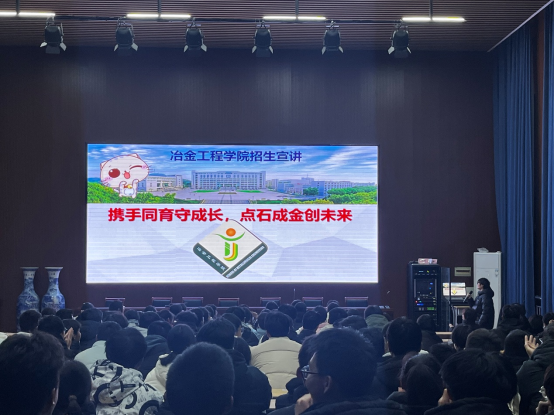 宣讲团成员王亮详细地介绍了我校师资力量、特色专业、就业情况以及我校近几年在省内的招生录取情况。同时,王亮分享了在大学的生活,激起了同学们对大学生活强烈的好奇和憧憬。宣讲团成员任杰向同学们介绍了我校国家一流本科专业冶金工程专业,详细介绍学院发展历程、学科建设、师资力量、就业前景以及考研保研率等多个维度,激发了同学们对冶金工程相关专业的浓厚兴趣。