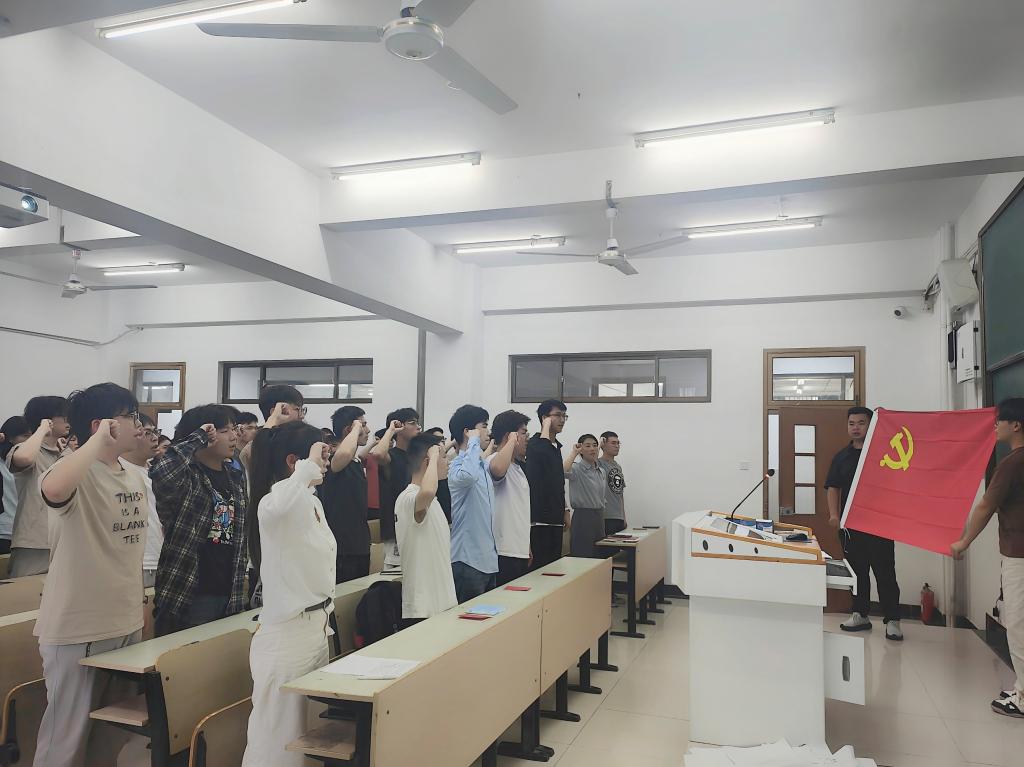 党委在东教一北104教室举行2025年上半年新发展党员入党宣誓仪式。学院党委副书记、纪委书记、副院长朱艳飞,各学生党支部书记、全体新发展党员参加了宣誓仪式,仪式由支部书记李亚飞老师主持。