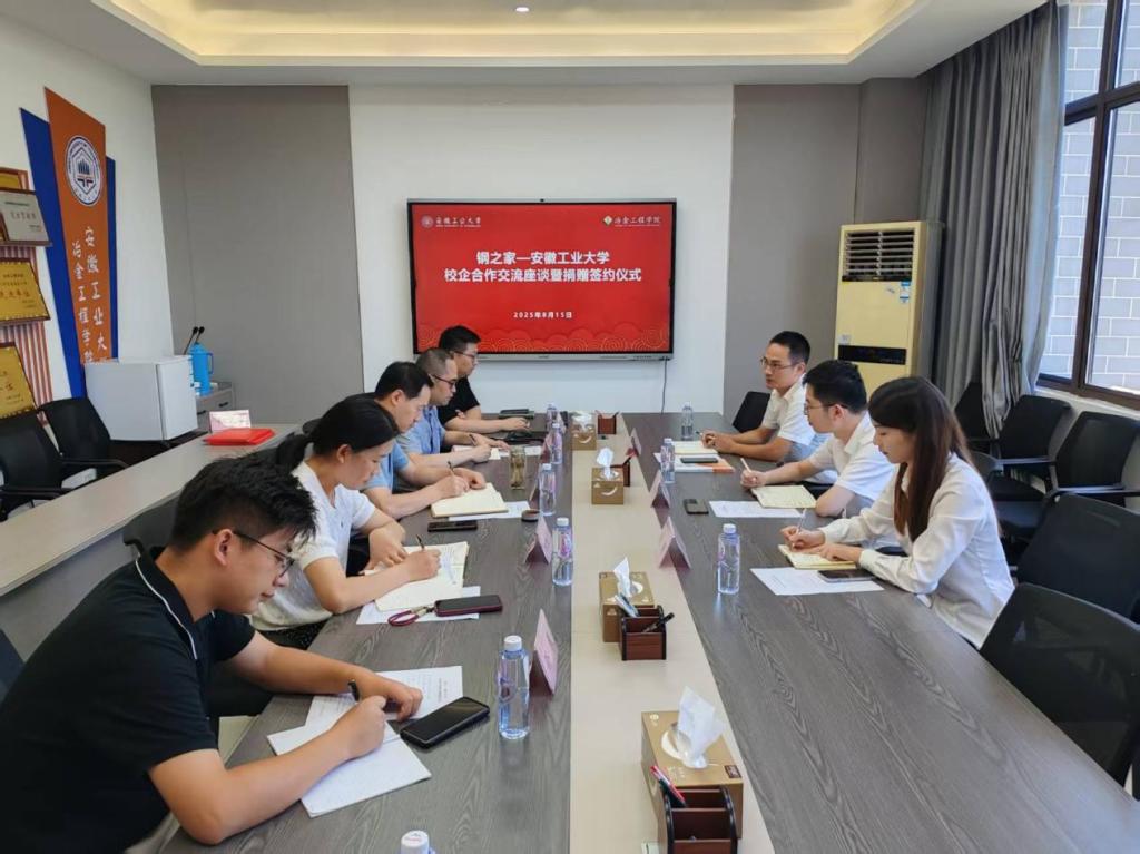 2025年8月15日上午,钢之家网站高级副总裁吴运豪,钢之家网站特钢部经理、安徽钢之家副总经理杜郑一行来校开展校企合作交流暨捐赠签约仪式。学院党委书记路壮志,党委副书记、纪委书记、副院长朱艳飞及企业、学院师生代表出席本次活动。
