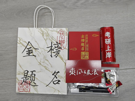 学院为考研学子精心准备的“考研加油包”,从选择礼品、策划创意、分装到发放,全部由冶金学院的师生们亲手完成,每一份礼物都寄托着学院对考研学子们的亲切关怀和殷殷祝福。加油包内包含印有“一战成硕”、“考研上岸”、“金榜题名”等祝福语的文具礼包、祝福卡片、书签、研考版大红罐可乐、代表“巧克难题”的巧克力以及定制的手提袋。其中,328张祝福卡片全部由2020级辅导员王晶和孙晨亲笔书写,将对同学们的美好祝愿与真诚祝福诉诸笔端。考研加油包,传递的不仅仅是物质的鼓励,更多的是精神的鼓舞,希望他们在考研的道路上能够充满信心与勇气,鼓励他们在最后冲刺阶段保持良好心态,全力以赴迎接考试!