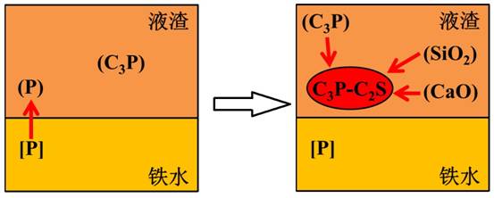 脱磷是炼钢的主要任务之一,2014年我国粗钢产量约为7亿吨,为了脱磷产生的炉渣约为7000万吨(平均约为100kg/t钢),消耗3500万吨以上石灰,众所周知,炼钢用石灰是通过石灰石(不可再生资源)煅烧而成,其煅烧过程中会放出大量的CO2,并且由于脱磷渣中存在着大量未反应的自由CaO,炉渣很难回收利用,造成了极大的资源浪费。并且随着钢铁行业的飞速发展,世界范围内高品位优质铁矿石资源逐渐枯竭,以储量丰富、成本低廉的高磷铁矿为代表的低品位复杂铁矿资源的开发利用逐渐受到关注,高磷铁矿的使用必然会使铁水中磷含量增加,采用高磷铁水冶炼会加重炼钢脱磷负担,使石灰消耗与渣量进一步增加。因此,开发石灰消耗少、渣量少的脱磷技术至关重要。日本研究工作者从2006年开始研究固液共存炉渣脱磷技术,并约于2014年成功运用于工业实践,在实现高效脱磷的同时,大幅降低了石灰消耗及渣量。低碳冶金研究所从2012年开始研究复合相(固液共存)炉渣脱磷技术,取得了显著进展,并将该技术成功应用于低成本炼钢工艺中,为企业带来了显著的经济效益。