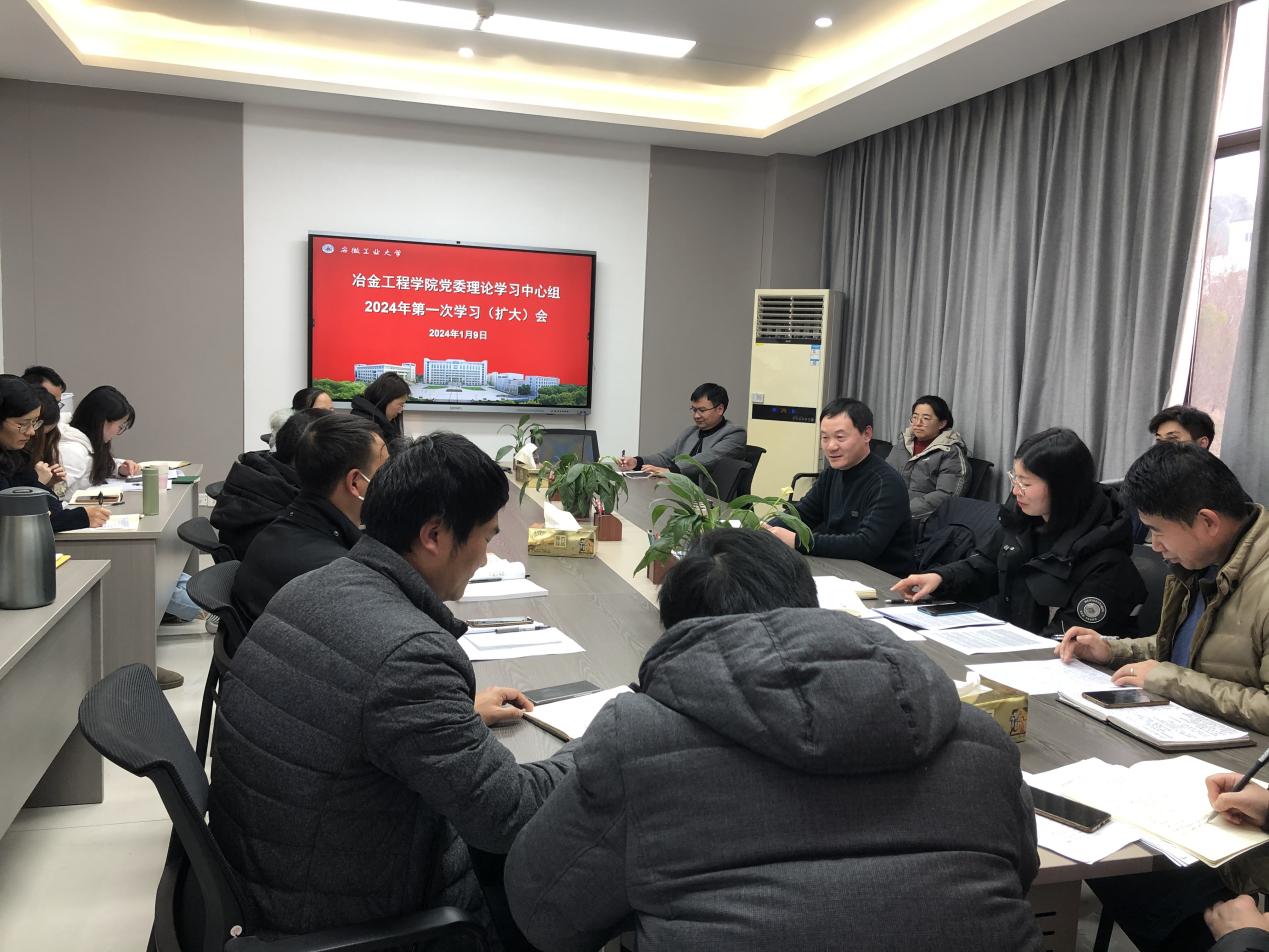 党委理论学习中心组在冶金楼南324会议室召开2024年第一次学习(扩大)会,院党委理论学习中心组成员、院纪委委员、党支部书记、系主任、全体辅导员参加了会议,会议由院党委书记路壮志主持。