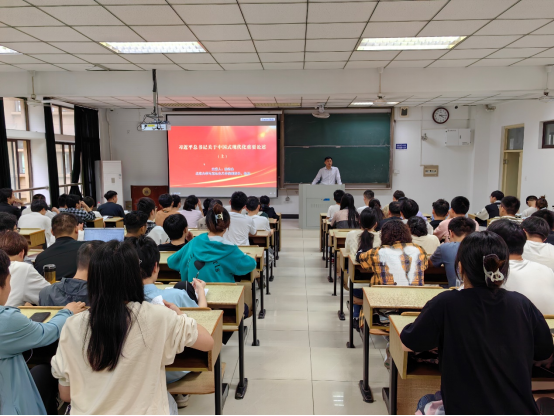 在秀山校区教一南202和南204两个教室举行了习近平总书记关于中国式现代化的专题党课。学院党委副书记、副院长杨建主持,学院全体党员参加了此次党课。