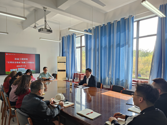 于秀山校区冶金楼南324会议室召开会文明安全宿舍创建工作推进会。院党委副书记、副院长杨建及学院全体辅导员参加了此次会议,会议由杨建主持。