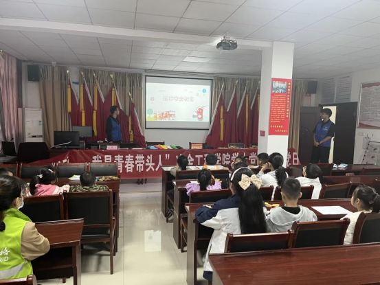 在与社区工作人员的协调合作下,同学们分成两组,分别进行口腔义诊志愿服务以及七彩志愿活动。在社工站室外,负责义诊的志愿者们拿着口腔模型,积极向身边走过的居民们宣传牙科健康的相关知识,此次口腔知识宣传和口腔义诊就为他们提供了一个合适的检查治疗的机会。在社工站内的会议室,第二组的志愿者们将自己所准备的课程认真进行展现,通过“树叶画”、“手工制作”、“蜡笔画”、“消防知识讲座”等系列丰富的课程,志愿者们将自己的热情与爱心为孩子们传递了温暖,让他们感受到七彩的世界。