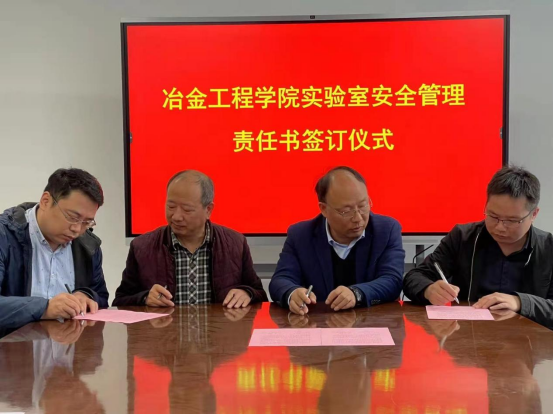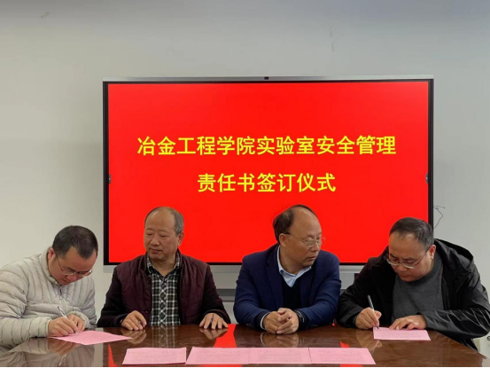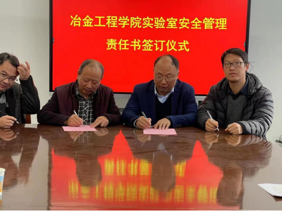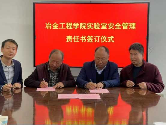 图五、学院领导冶金工程系主任和书记签订实验室安全管理责任书