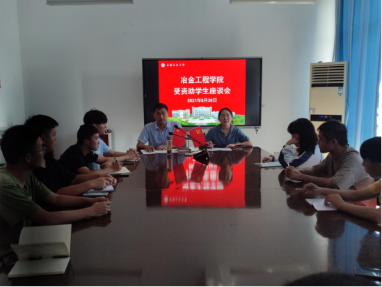 在冶金楼南324召开受资助学生座谈会。会议由学院资助联系人王晶主持,院党委副书记、副院长杨建出席会议,各年级学生代表参加了座谈会。