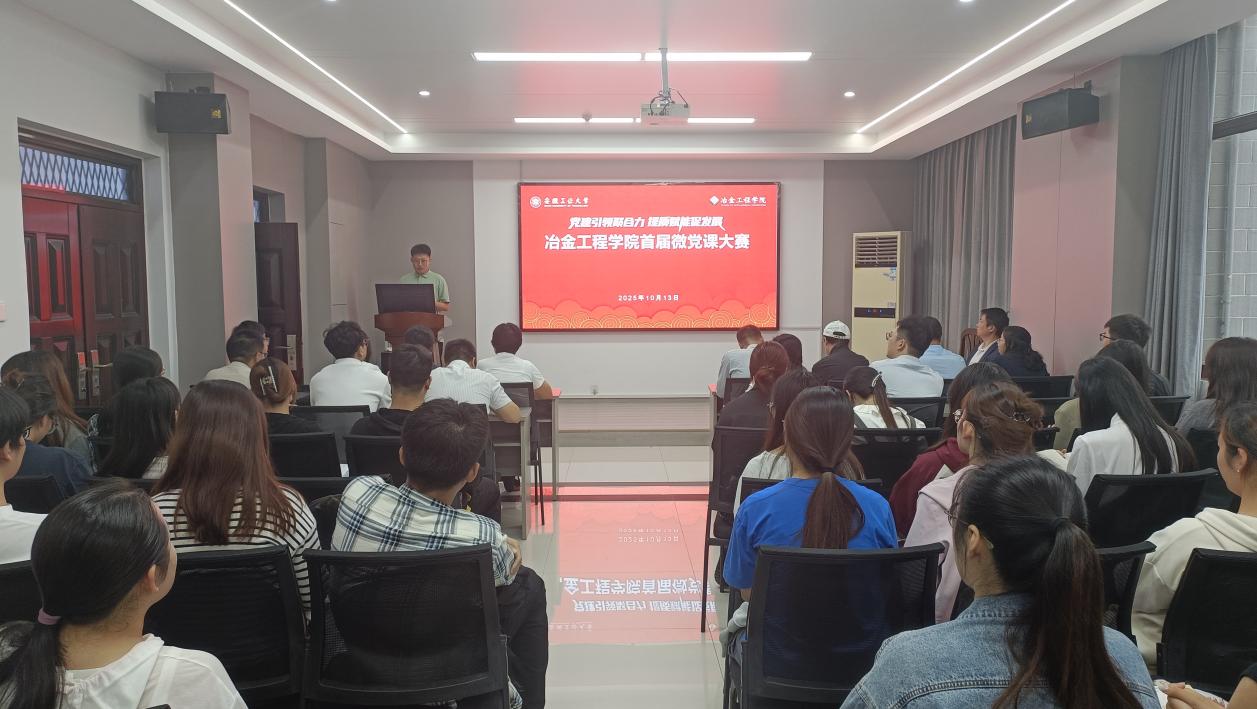 在冶金楼南302报告厅举办2025年微党课比赛。来自学院各党支部的17名参赛选手紧扣党的创新理论、光辉党史、先进典型与专业使命等主题,开展了一场主题鲜明、内容生动的微党课展示。