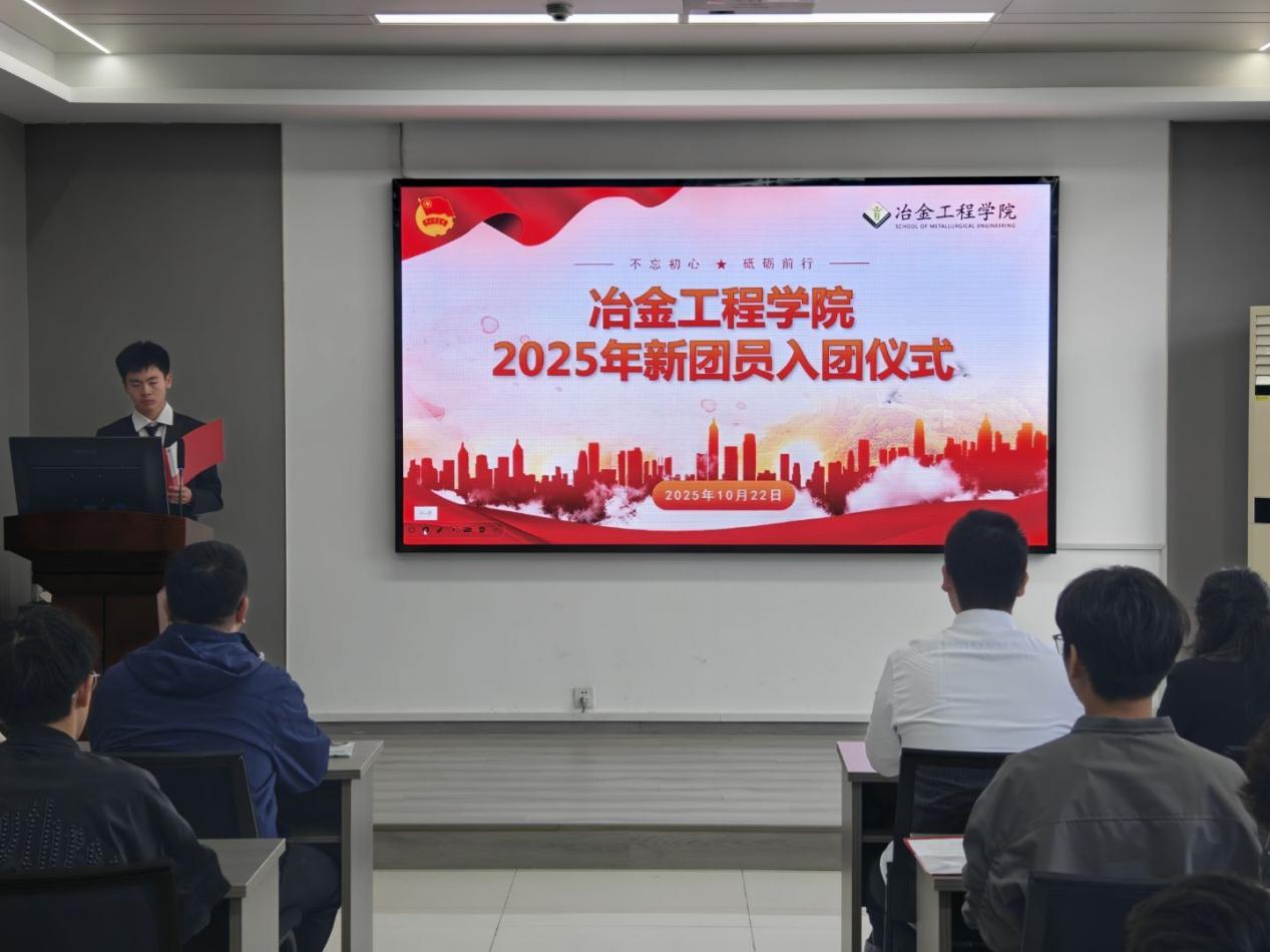 在冶金楼南302会议室举行2025年下半年新团员入团仪式。院团委书记张夏、2025年新发展团员及优秀团员代表参加了本次活动。