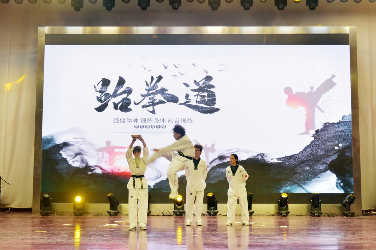 晚会分为“追光·承韵启新”与“聚光·同心致远”上下两个篇章。上篇中,舞蹈《壁灵烟岚》以柔美舞姿展现中华古典韵味;跆拳道表演《武动新声》刚柔并济,彰显青春力量;诗朗诵《国士无双》深情礼赞民族脊梁;歌曲《稻香》唤起温暖回忆;挑战杯国赛优秀项目展演则彰显学院创新创业育人成果。