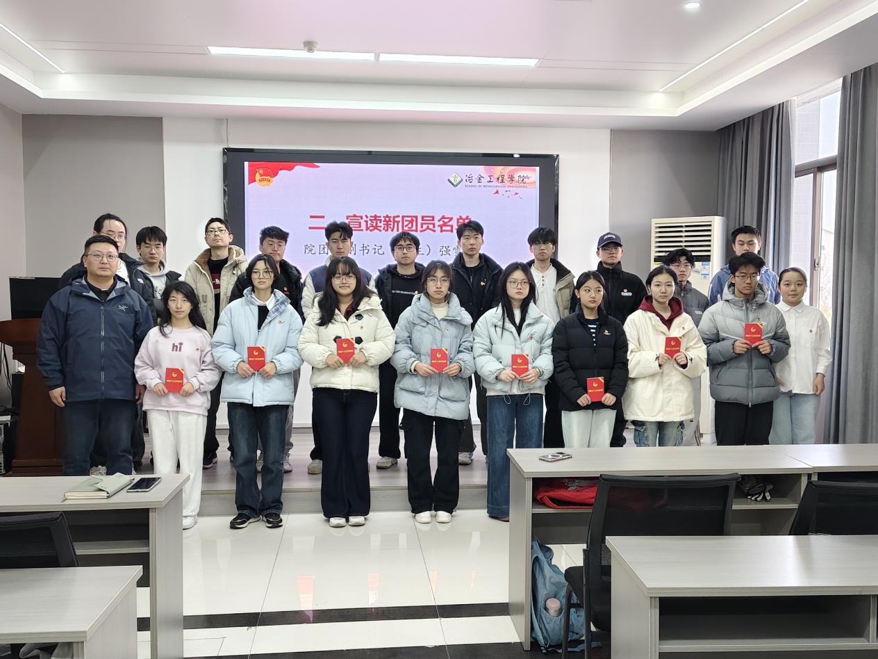 在冶金楼南302教室举行2025年下半年第二批次新团员入团宣誓仪式。院团委书记张夏、学院优秀团员代表、新发展团员共计40余人参加仪式。