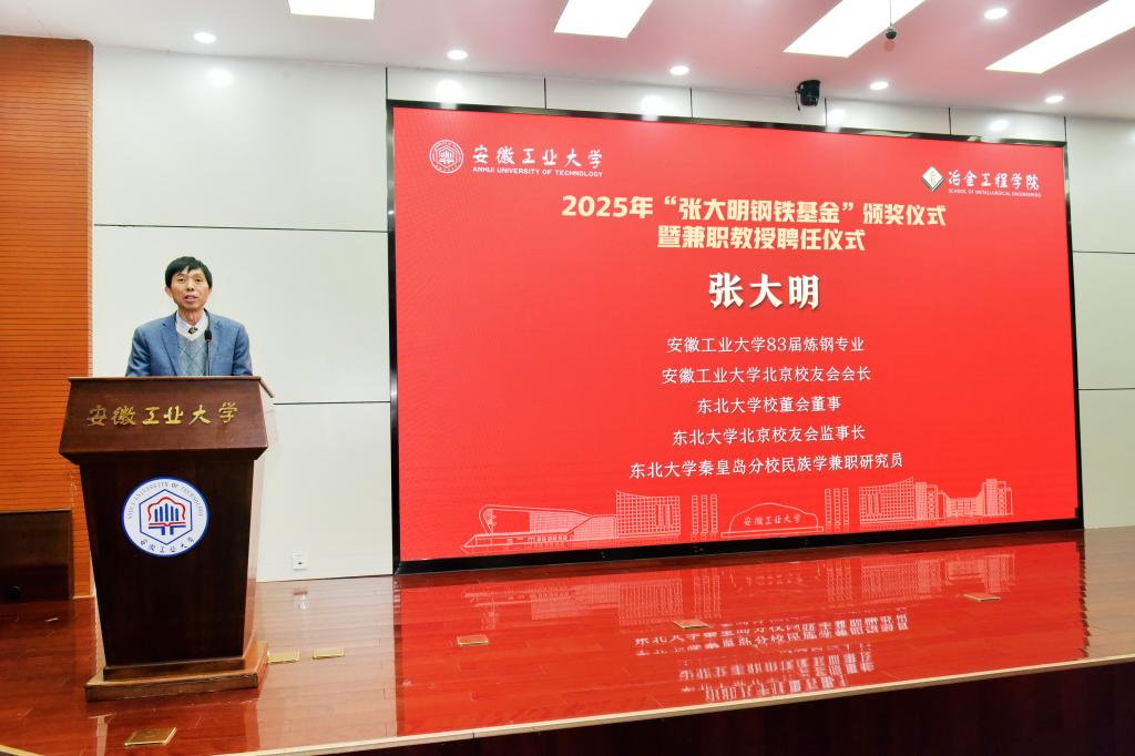 在秀山校区振华图书馆大明报告厅举行“张大明钢铁基金”颁奖暨兼职教授聘任仪式。校党委常委、副校长郑利平出席活动并致辞。51动漫