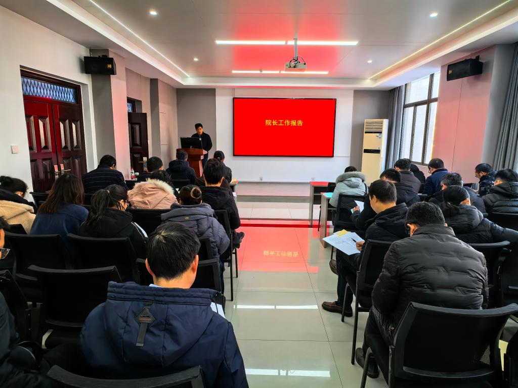 会议在雄壮的国歌声中拉开序幕。院领导张立强代表学院作2025年度工作报告,并对学院“十五五”事业发展规划制定情况进行了说明。工会主席张龙作工会工作报告及工会经费使用情况报告。办公室副主任汪明霞就学院2025年度财务运行状况及学院绩效分配方案作了说明。