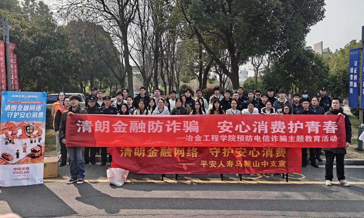 联合马鞍山市治安大队、马鞍山市银保监会、中国平安人寿马鞍山中心支公司等单位,在秀山校区振华图书馆北广场开展“3·15金融安全进校园”宣传教育活动。