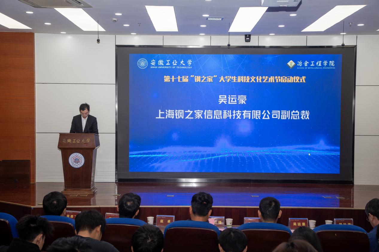 4月24日上午,学院在秀山校区振华图书馆大明报告厅举行第十七届“钢之家”大学生科技文化艺术节启动仪式暨2025年度“钢之家”奖学金颁奖仪式。上海钢之家信息科技有限公司高级副总裁吴运豪、安徽钢之家电子商务有限公司副总经理杜郑、上海钢之家信息科技有限公司国际部主管杨珊、院领导、各系负责人及师生代表参加了本次活动。