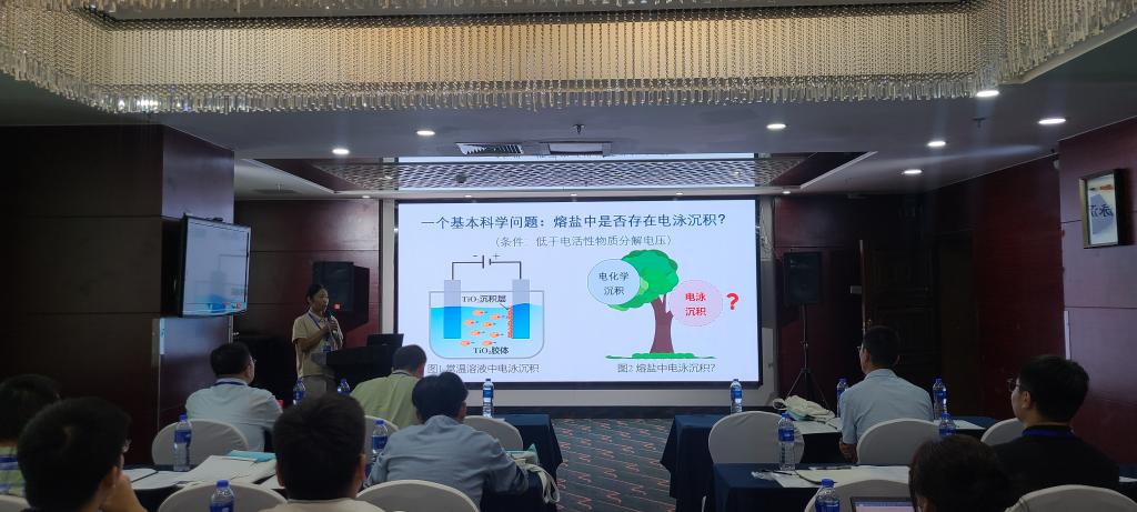 有色金属冶金系教师肖赛君参会,并在分会场作题为“涂层的熔盐电泳沉积制备与生长机理”的主旨报告。重点介绍了课题组在熔盐电泳沉积研究方向上的最新研究进展,包括新发现的熔盐中碳化物等胶体颗粒电泳沉积现象及其致密涂层制备、涂层生长过程中存在的非经典结晶现象等。与会专家学者对课题组通过学科交叉来拓宽传统熔盐物理化学研究视野、形成新学科生长点的做法表示了肯定,并就熔盐电泳沉积研究方向的未来发展提出了宝贵的建设性意见。