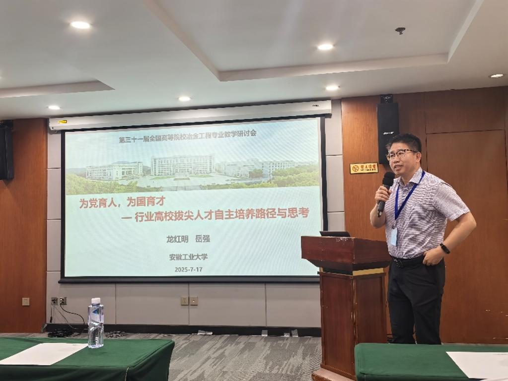 会议期间,岳强作了“为党育人、为国育才—行业高校拔尖人才自主培养路径与思考”的分会场报告,重点介绍了面向国家重大需求,我校冶金类特色专业在教学创新、科研反哺教学、校企协同育人等方面的特色做法和取得的成效,报告内容受到了与会兄弟院校专家的热烈研讨。