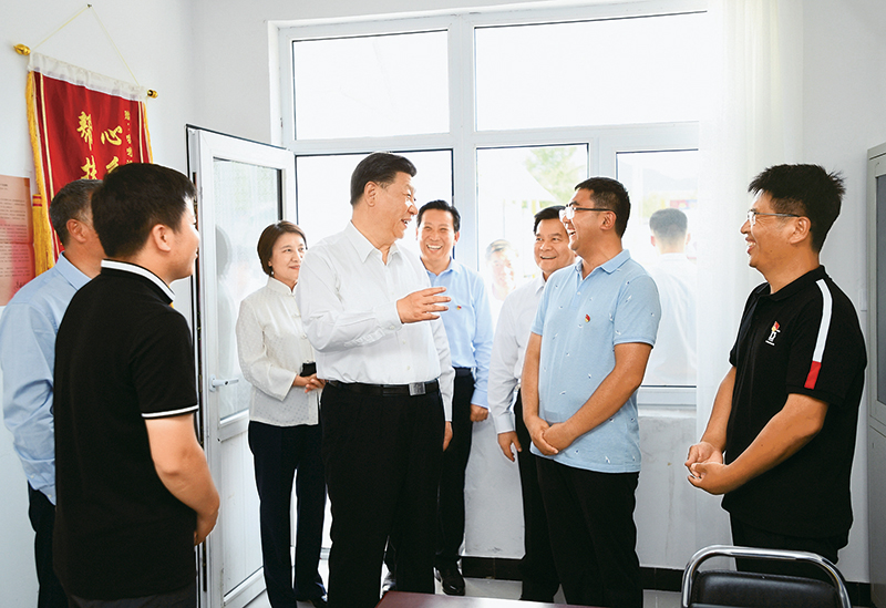 2019年7月15日至16日,中共中央总书记、国家主席、中央军委主席习近平在内蒙古考察并指导开展“不忘初心、牢记使命”主题教育。这是15日下午,习近平在赤峰市喀喇沁旗河南街道马鞍山村党群服务中心了解基层党建、民族团结和乡村振兴情况。 新华社记者 谢环驰/摄