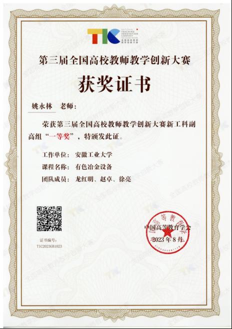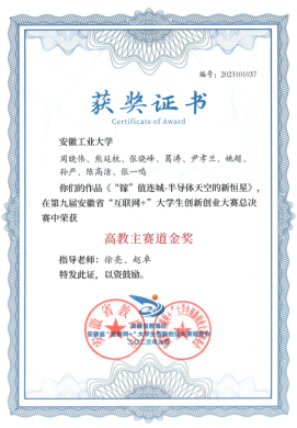 图7全国大学生冶金科技竞赛一等奖&安徽省“互联网+”大学生创新创业大赛金奖