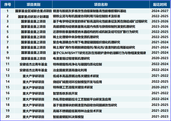 表1部分科研项目列表