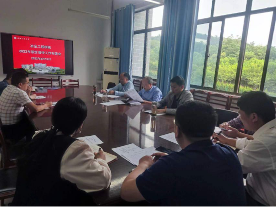 于秀山校区冶金楼南324会议室召开2022年本(专)科招生宣传工作布置会。学院党政领导、各系室主任、办公室主任、教学干事、相关辅导员参加了此次布置会。