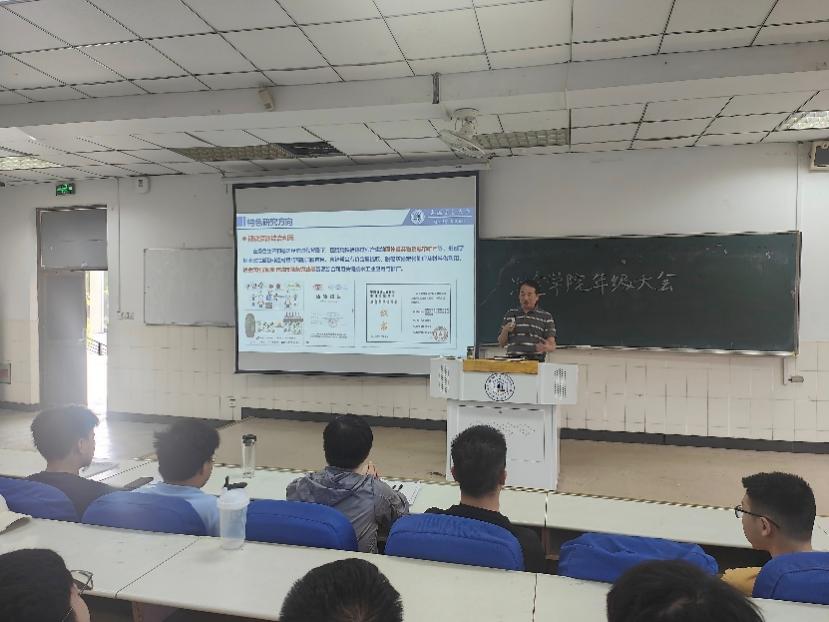 会上,龙红明以《做更好的自己,绽放梦想》为主题进行动员讲话。他结合学院近年来的科研与人才培养成果,立足当下就业与考研形势,分析了考研深造的重要意义。强调读研是提升学术能力、服务社会需求的重要途径,并指出学院在师资队伍建设、研究生培养、科研领域的显著优势。从政策解读、专业招生、备考策略等方面鼓励同学们充分了解考研形势,制定科学合理的学习计划,以坚定的信念和不懈的努力投入备考工作中,运用适合自己的方法打赢这场栉风沐雨的持久挑战。
